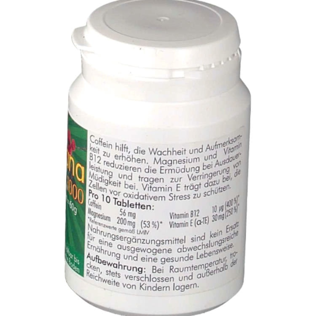 Гуарана повышает такие качества организма, как выносливость, работоспособность, оптимизирует функционирование иммунного механизма. Особенностью продукта является то, что добавка имеет в своей структуре несинтетический кофеин естественного происхождения. Биосистемы человека остро нуждаются в нормированном его количестве. Так поддерживается равновесный энергетический уровень на протяжении долгих месяцев.
