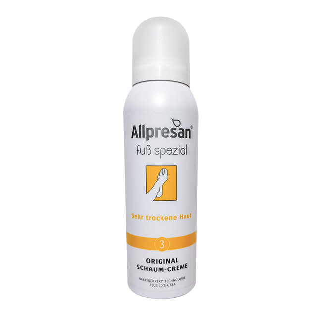 Крем-пена Аллпресан предназначен для ежедневного домашнего ухода за очень сухой кожей ног.