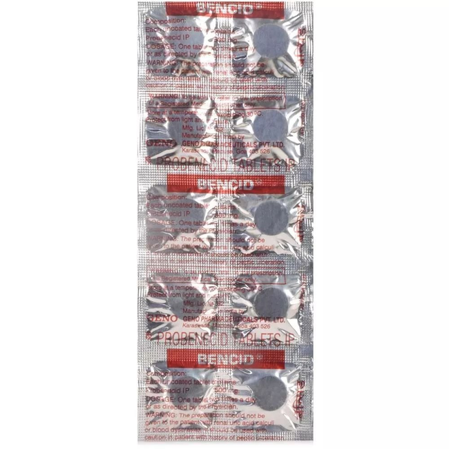 Под воздействием активного компонента подавляется реабсорбция мочевой кислоты в канальцах почек, усиливается ее эвакуация из организма. Если одновременно применяются другие лекарственные средства, то их выведение тормозится с увеличением плазменных концентраций. Это свойство используется для повышения эффективности антибиотикотерапии.