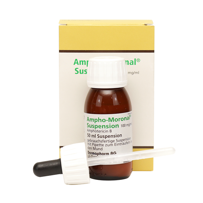 Амфотерицин В в виде суспензии применяется для местного лечения кандидоза полости рта и предупреждения размножения желудочно-кишечных дрожжевых грибков у больных со сниженным иммунитетом.