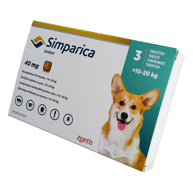 Симпарика для собак 40мг 10-20кг ГЕРМАНИЯ! табл. для пер. пр. N3